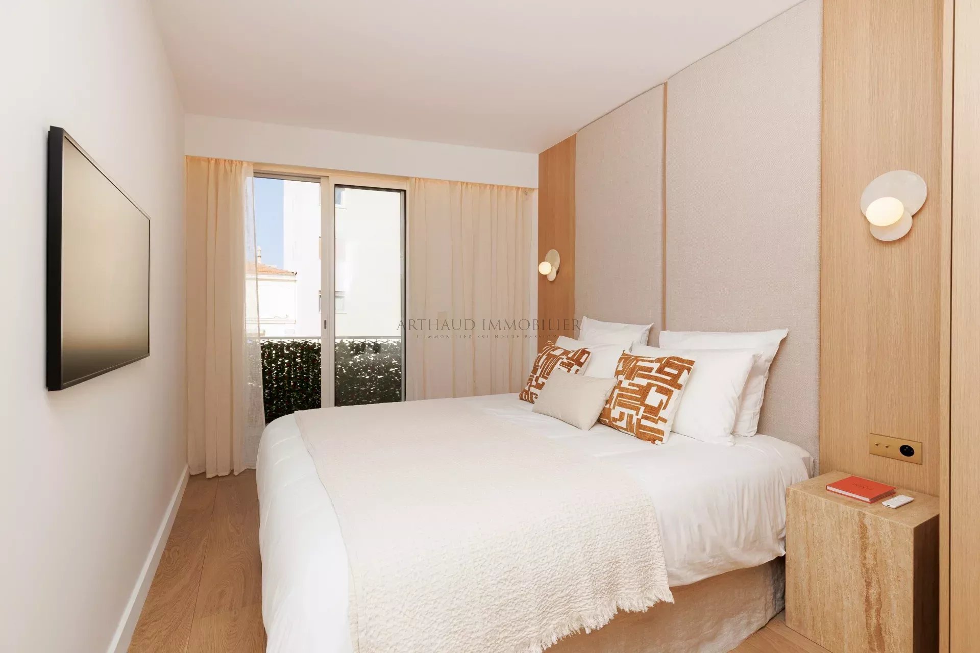 Traversant et baigné de lumière, cet appartement déploie des volumes généreux ouverts sur la grande bleue :