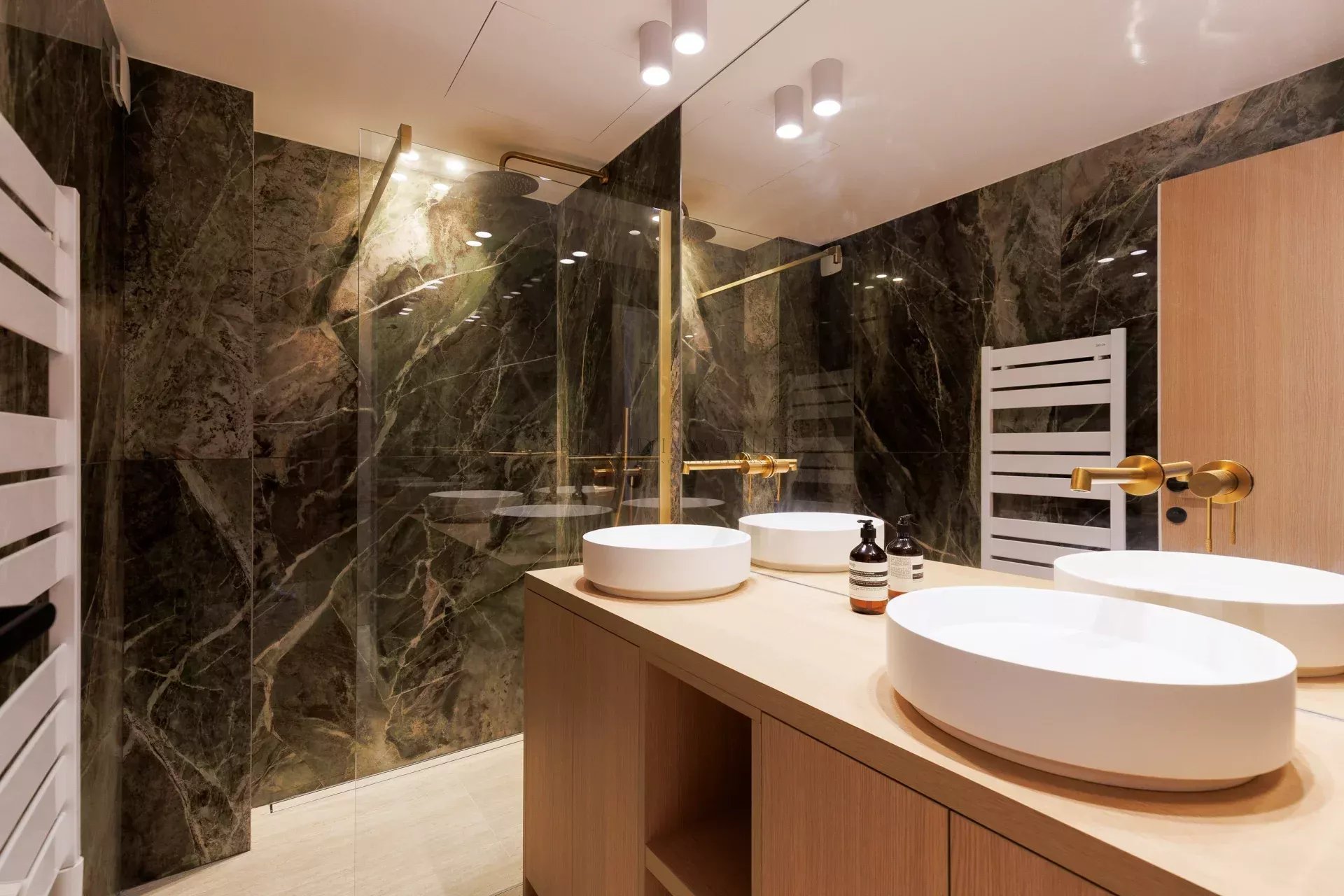 L'espace nuit : Deux chambres avec dressings sur-mesure dont une suite parentale avec salle de bain. Une seconde salle de bain avec marbre. Seconde terrasse de 5,5 m² côté chambres, pour des matins au calme.